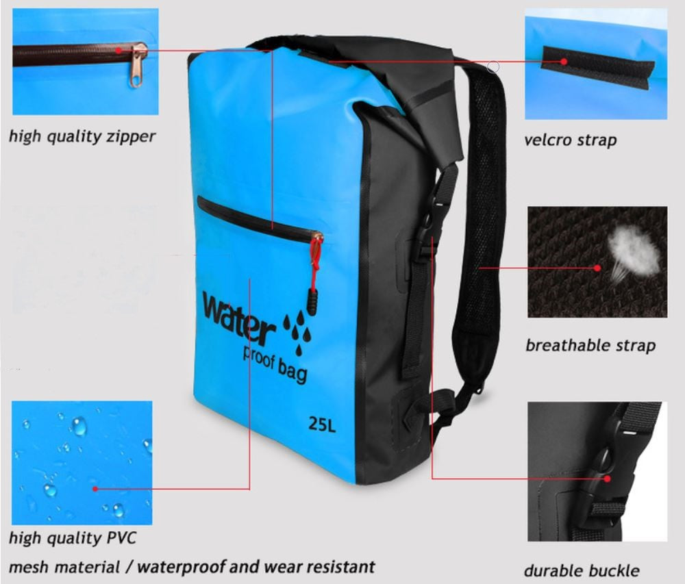 Our waterproof dry backpack is double reinforced at all the major pressure points so that it’s durable enough and wear-resistant.